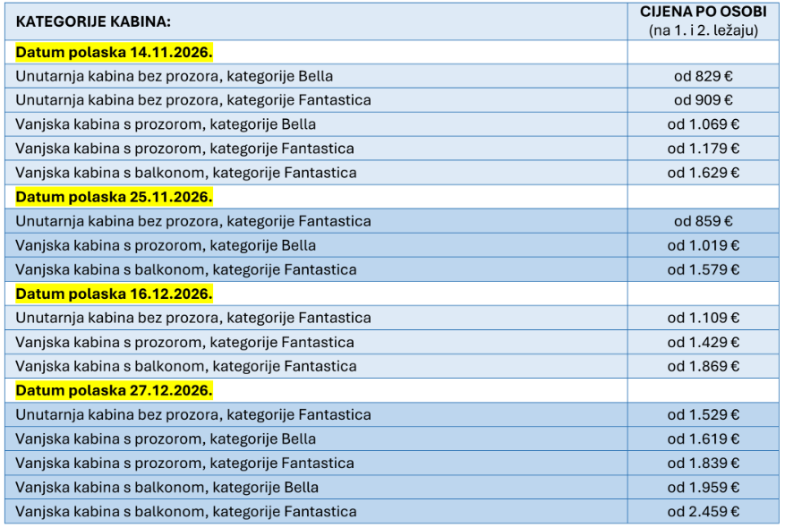DATUM: 14.11. / 25.11. / 16.12./ 27.12. 2026. | 12dana / 11 noćenja