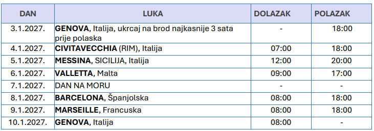 RASPORED / ITINERER KRSTARENJA je podložan promjenama koje su u vezi sa trenutnom situacijom u luci pristajanja, organizator zadržava pravo izmjene itinerera kao i zrakoplovna kompanija.