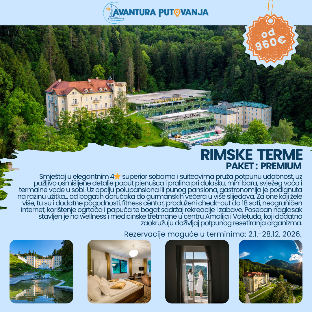 U srcu Slovenije, među šumovitim obroncima i tišinom koja smiruje i najnemirnije misli, smještene su RIMSKE TERME , mjesto gdje se prošlost Rimskog Carstva i suvremeni luksuz stapaju u jedinstveno iskustvo.