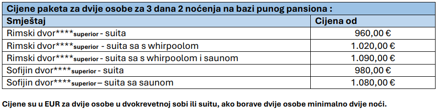 – Smještaj u dvokrevetnoj sobi ili suitu u odabranom hotelu sa 4**** zvjezdice