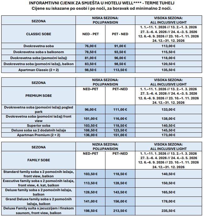 Terme Tuhelj – Hotel Well**** zadržavaju pravo promjene cijena.